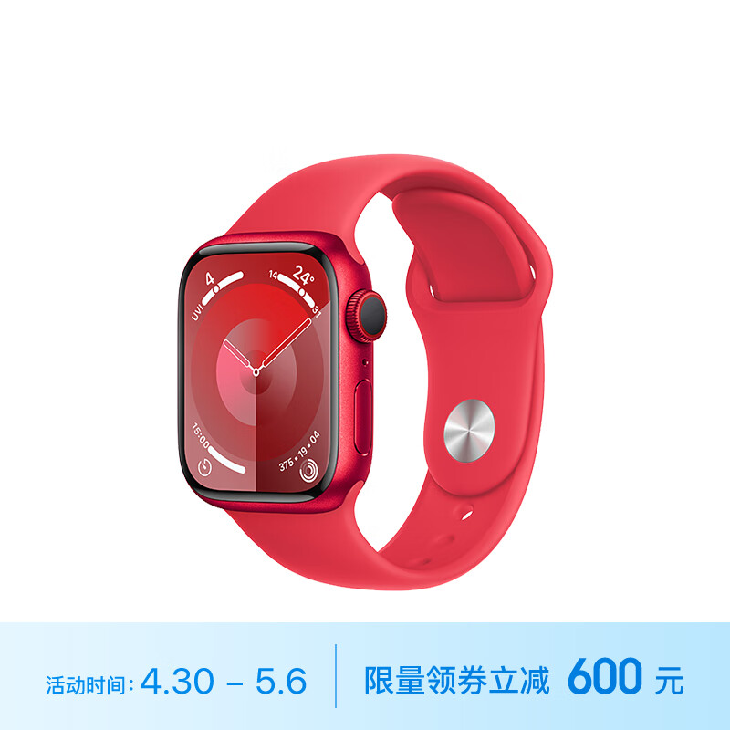Apple/苹果 Watch Series 9 智能手表GPS+蜂窝款41毫米红色铝金属表壳红色运动型表带S/M MRY73CH/A价格:3799.00元!