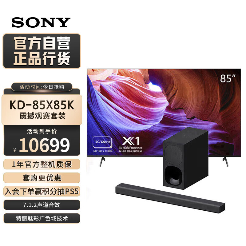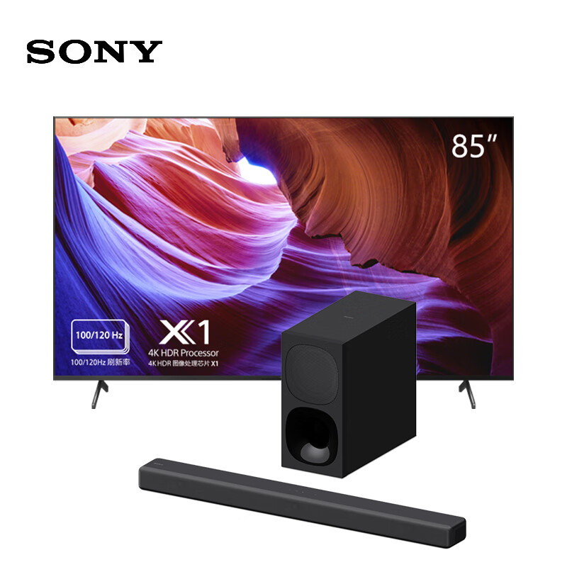 索尼(SONY)KD-85X85K+HT-G700 游戏畅玩套装 7.1.2声道音效 大功率无线低音炮 全景声 家庭影院 回音壁价格:10699.00元!