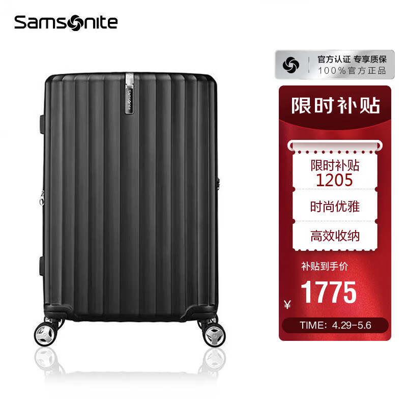 新秀丽(Samsonite)行李箱时尚竖条纹拉杆箱旅行箱黑色25英寸托运箱GU9*09002价格:1775.00元!