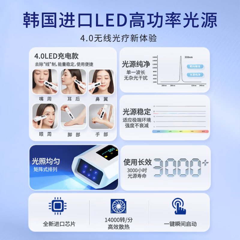 【4.0充电款】邦臣308白癜风治疗仪窄谱nbuvb家用医用医院紫外线灯银屑病牛皮癣光疗仪同款非准分子激光价格:2580.00元!