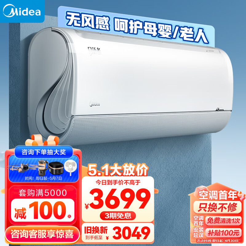 美的(Midea) 大1匹升级款极地风语者新一级智能家电变频冷暖 壁挂式空调KFR-26GW/BDN8Y-FA200(1)A价格:3699.00元!