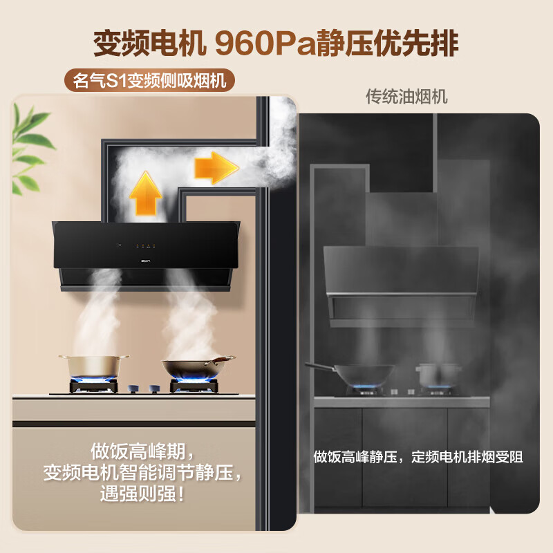 名气(MQ)老板抽油烟机侧吸变频油烟机家用24吸力960变频静压燃气热水器三件套S1+A6510BT++R5A06-14价格:3898.00元!