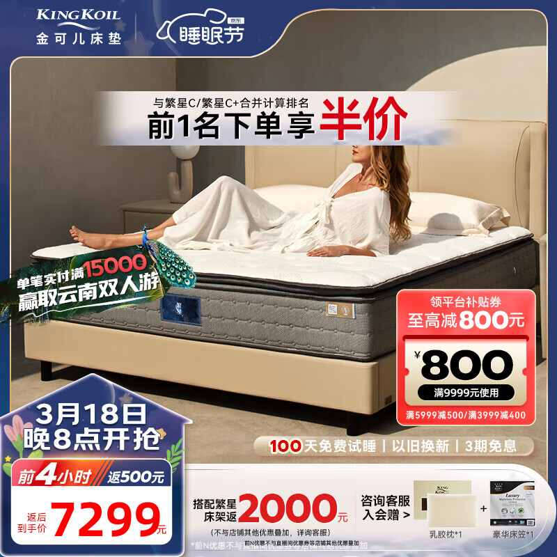 金可儿(Kingkoil)乳胶床垫独立五分区弹簧软硬适中繁星C床垫1.8米*2米价格:7899.00元!