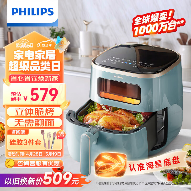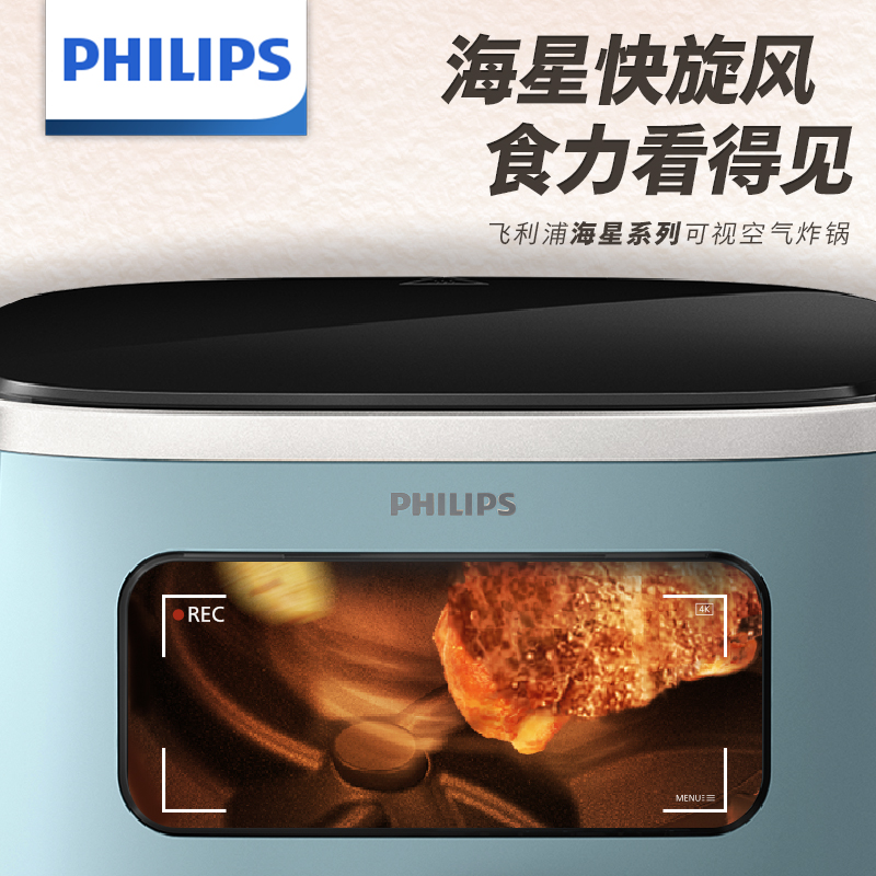飞利浦(PHILIPS)海星空气炸锅 家用5.6L大容量智能触屏 多功能全自动【透明可视+不用翻面】双层锅体易清洗HD9257价格:579.00元!