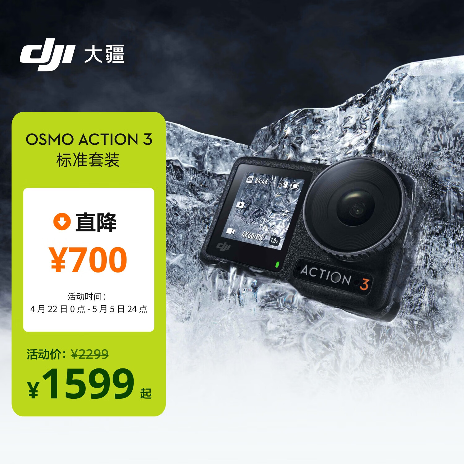 大疆 DJI Osmo Action 3 运动相机 4K高清防抖Vlog拍摄头戴摄像机 滑雪摄影+随心换2年版+128G内存卡价格:1882.90元!