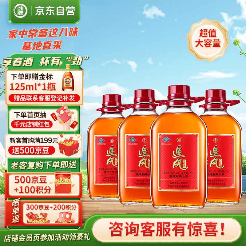 劲牌 追风八珍酒 38度 2.5L*4 家庭分享装价格:394.00元!