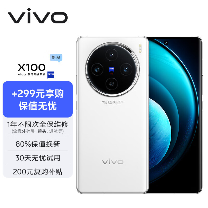 vivo X100 16GB+1TB 白月光【保值无忧套装】蓝晶×天玑9300 5000mAh蓝海电池 蔡司超级长焦 5G 拍照 手机价格:5298.00元!