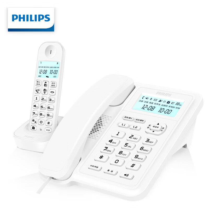 飞利浦(PHILIPS)数字无绳电话机 无线座机 子母机 办公家用 信号覆盖广 屏幕白色背光 DCTG167一拖一白色价格:289.00元!
