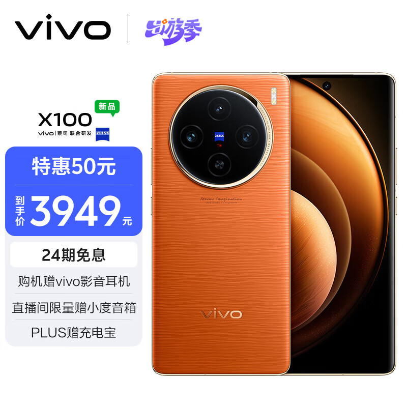 vivo X100 12GB+256GB 落日橙 蓝晶×天玑9300 5000mAh蓝海电池 蔡司超级长焦 120W双芯闪充 拍照 手机价格:3999.00元!