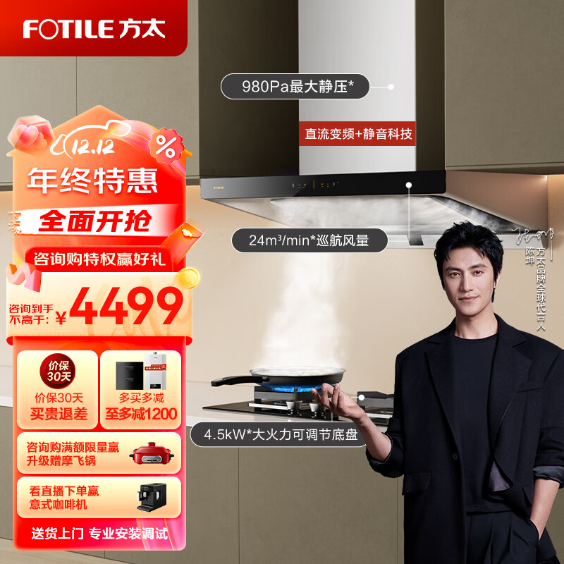 方太抽吸油烟机灶具套装 欧式顶吸排烟机燃气灶套餐 24巡航风量直流 家用烟灶EMQ6T+02-HT8BE.S天然气价格:4499.00元!