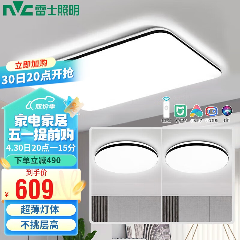 雷士照明(NVC)吸顶灯客厅大灯卧室餐厅灯具全屋套餐两室一厅C主灯智能价格:1099.00元!