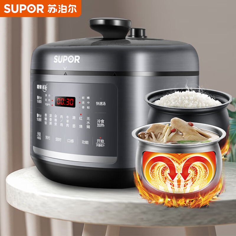 苏泊尔(SUPOR)全自动智能预约电锅5L不锈钢球釜大屏面板快速煲汤煮饭美食不等SY-50FC8168Q 双胆高压锅3-6人价格:749.00元!