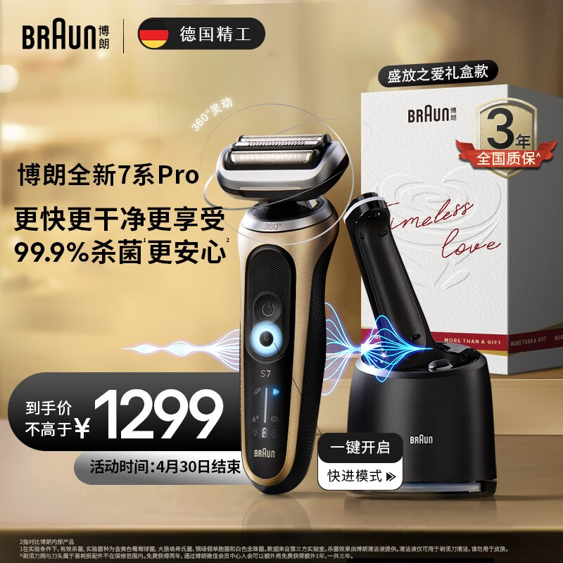 博朗(BRAUN)高效7系Pro钛金色升级版清洁护理中心电动剃须刀剃须刀往复式刮胡刀送男友男朋友生日礼物价格:1299.00元!