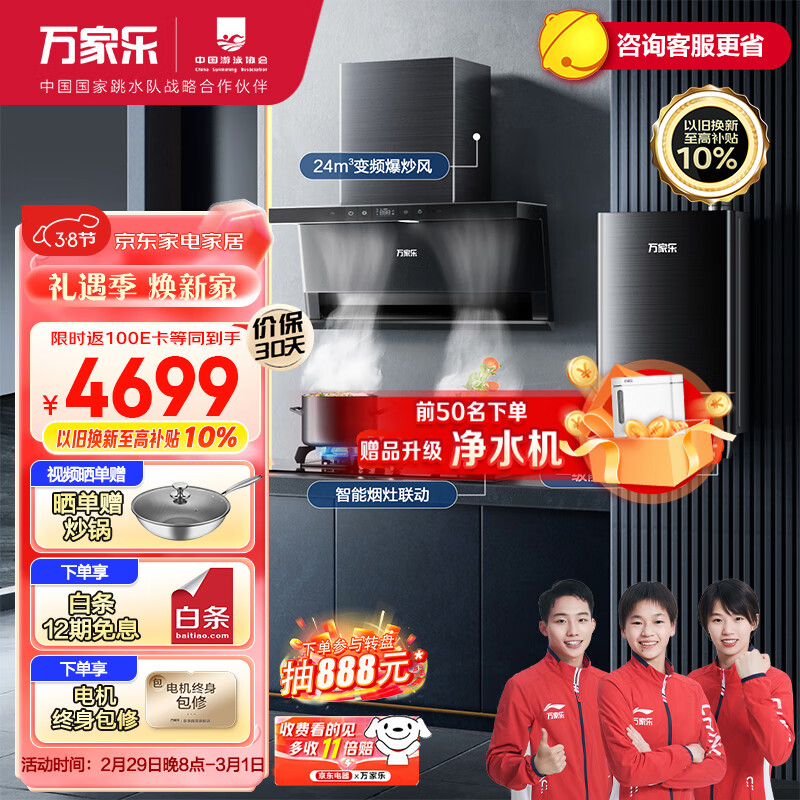 万家乐 抽油烟机 24m3/min顶侧三腔变频静音烟灶联动 16L防冻零冷水烟灶热套装TAK8+KV063B+16DLU3天然气价格:4799.00元!