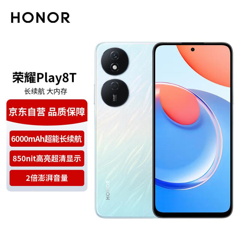 荣耀Play8T 6000mAh超能长续航 850nit高亮超清显示 5000万像素超清影像 8GB+256GB 流光银 5G价格:979.00元!