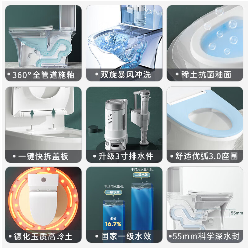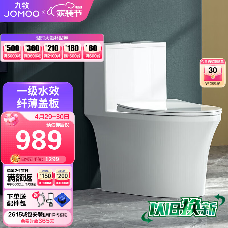 九牧(JOMOO)11262-2-1/31K-2家用马桶卫浴虹吸式节水抗菌易洁坐便器305坑距价格:1249.00元!