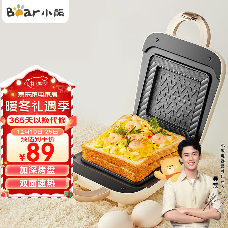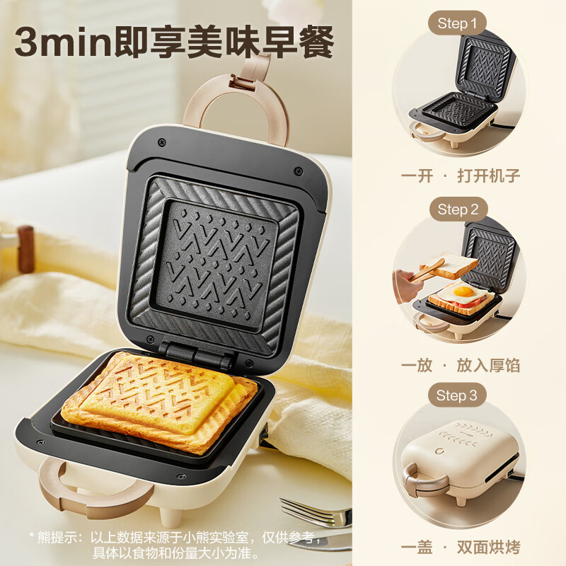 小熊(Bear)早餐机 三明治机早餐机面包机吐司机三文治华夫饼机电饼铛双面压烤SMZ-B05U5价格:89.00元!