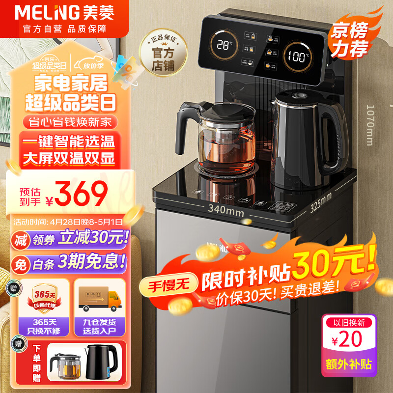 美菱(MeiLing)茶吧机家用饮水机遥控智能【双温双显双出水口】下置水桶立式泡茶机冷热款MY-C919-B价格:399.00元!