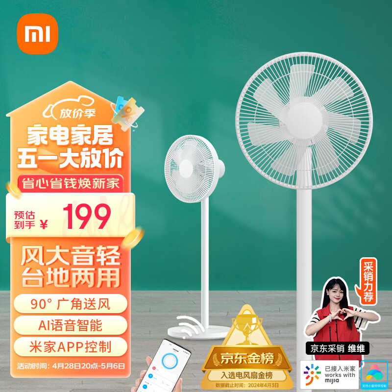 米家 小米电风扇 落地扇家用 7羽叶轻音大广角大风量远风距 台地两用 远程智能控制 AI语音价格:199.00元!