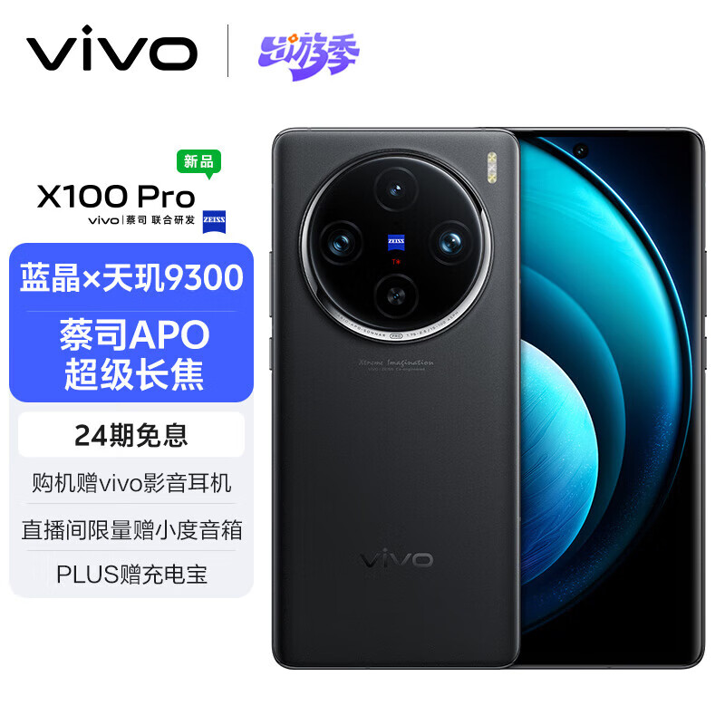 vivo X100 Pro 16GB+1TB 辰夜黑 蔡司APO超级长焦 蓝晶×天玑9300 5400mAh蓝海电池 自研芯片V3 手机价格:5999.00元!