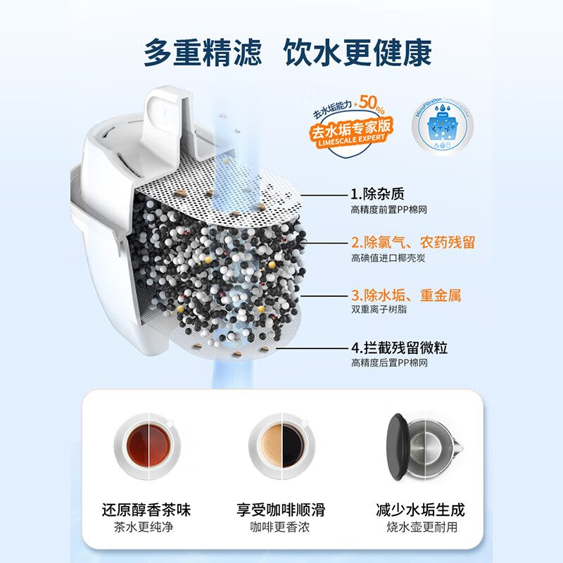 飞利浦(PHILIPS)净水壶家用过滤水壶厨房滤水杯自来水净水器AWP2811BLT价格:89.00元!