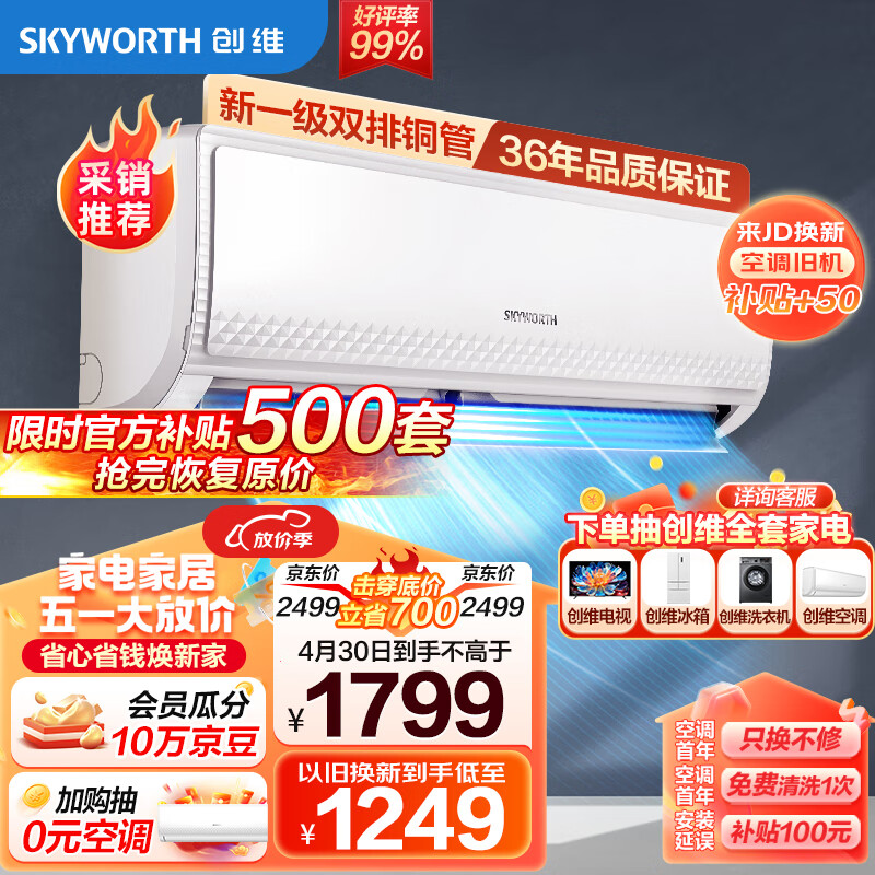 创维空调1.5匹新一级能效 畅享风 变频冷暖 自清洁 空调挂机卧室以旧换新 KFR-35GW/V3GB1A-N1价格:1699.00元!