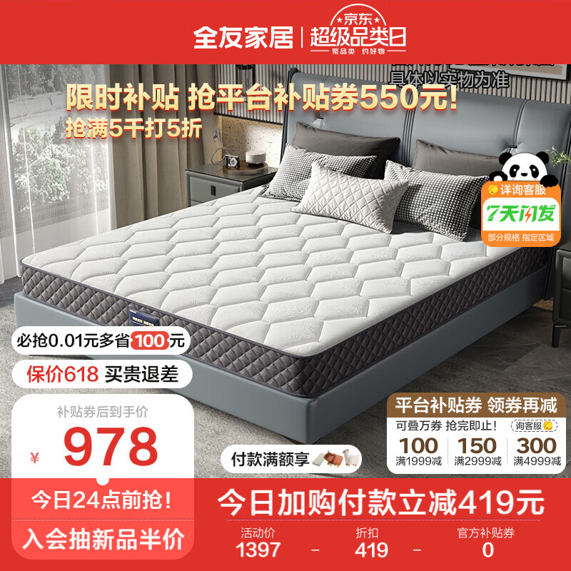 真的要说全友床垫是我喜欢的外观,质量还不错,这个商品的性能稳定,使用起来非常顺畅。