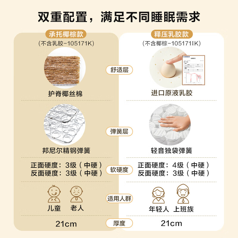 全友家居 床垫乳胶床垫软硬适中独立袋装弹簧床垫105171 I价格:1397.14元!