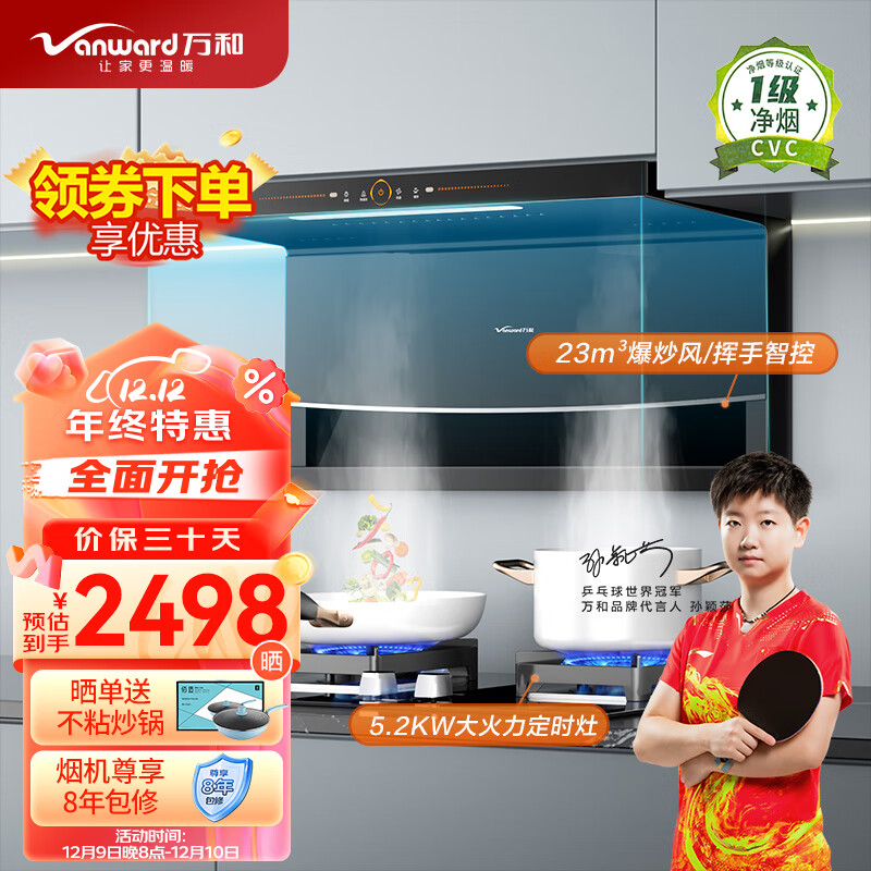 万和(Vanward)顶侧双吸7字型烟灶套装家用 23m3爆炒大吸力 烟灶套餐燃气灶具套装 WL856+T9L96(天然气)价格:2598.00元!