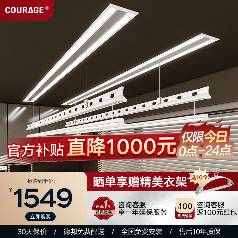 卡瑞琪(COURAGE)电动晾衣架隐形阳台家用隐藏式晾衣架升降晒衣架双杆 1.5米+被杆价格:2549.00元!