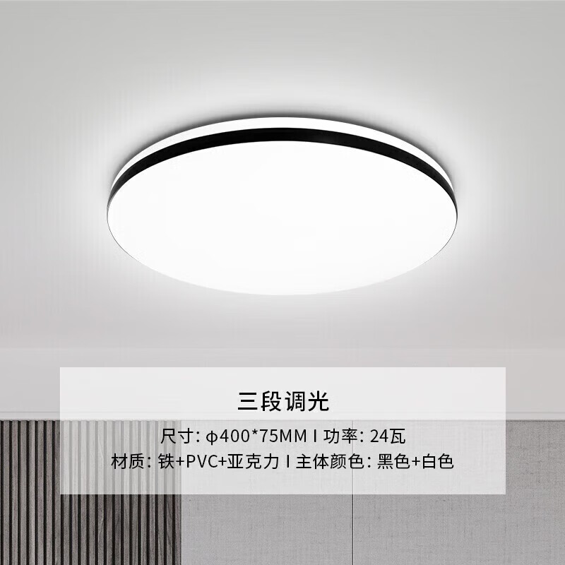 雷士照明(NVC) led吸顶灯北欧现代简约卧室餐厅书房灯饰灯具 24W圆形 三色调光价格:119.00元!