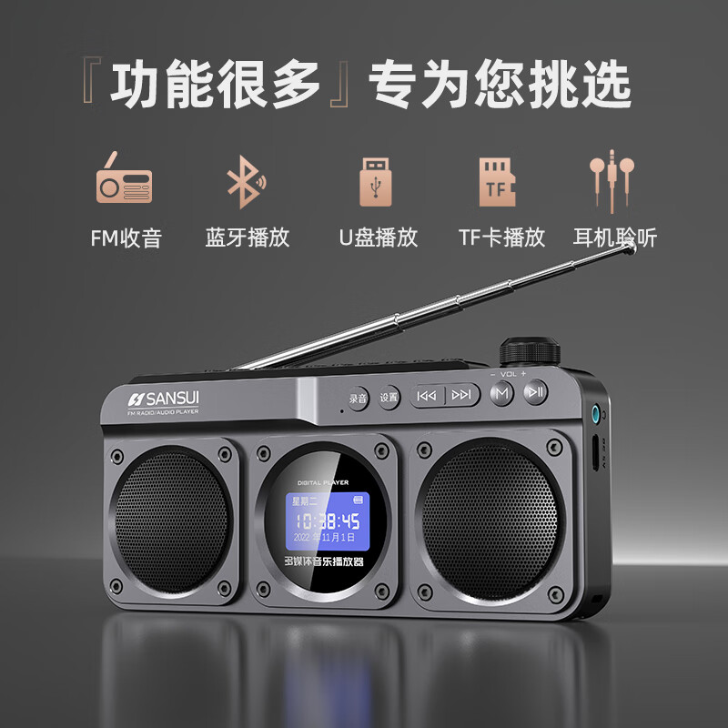 M32收音机老人老年人充电插卡迷你小音箱便携式随身听FM调频广播音响蓝牙音箱音乐播放器 灰色价格:168.00元!