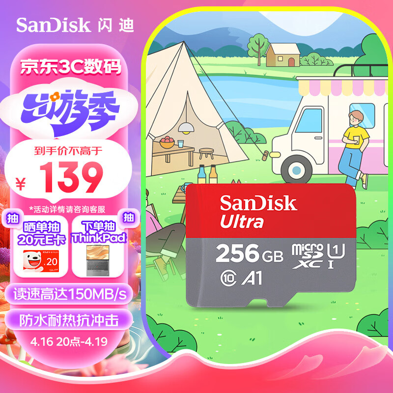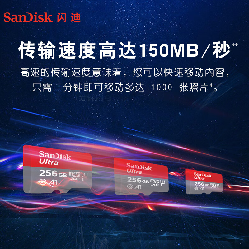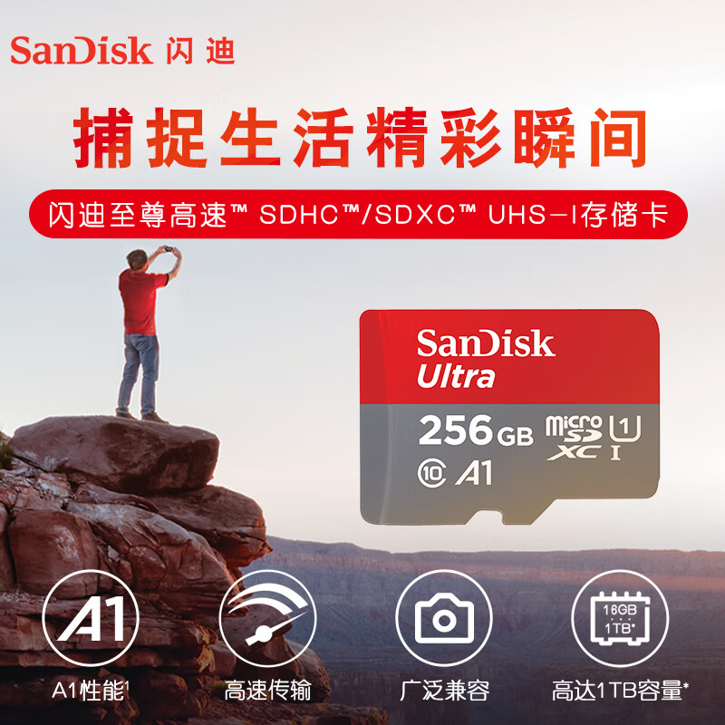 闪迪(SanDisk)256GB TF(MicroSD)存储卡 U1 C10 A1 高速移动版 读速150MB/s 手机平板游戏机内存卡价格:139.00元!