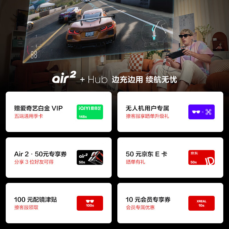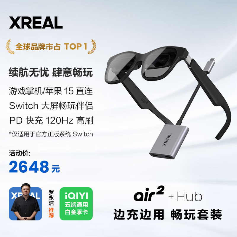 XREALAir 2 智能AR眼镜 Hub边充边用套装 Switch必备 掌机直连 PD快充 非VR眼镜 同vision pro投屏体验价格:2998.00元!