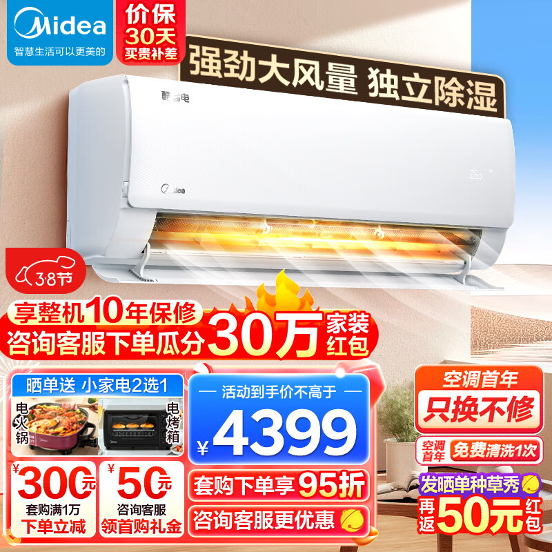 美的(Midea)空调 2匹 酷省电 新一级能效变频冷暖 自清洁 智能除湿 家用壁挂式空调挂机 KFR-46GW/N8KS1-1价格:4399.00元!