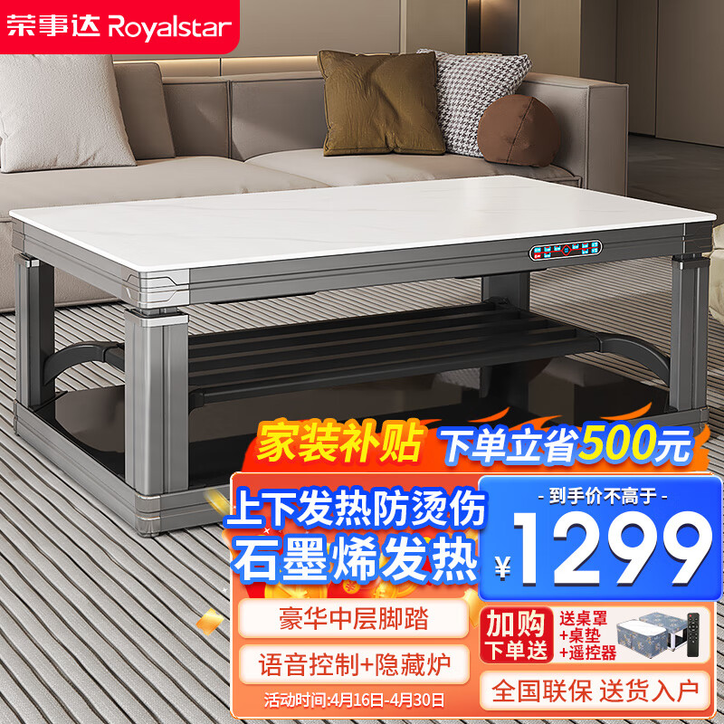 荣事达电暖桌1.2米石墨烯发热烤火茶几带语音控制升降取暖器家用电暖炉取暖桌长方形餐桌烤火桌RC-C2价格:1799.00元!
