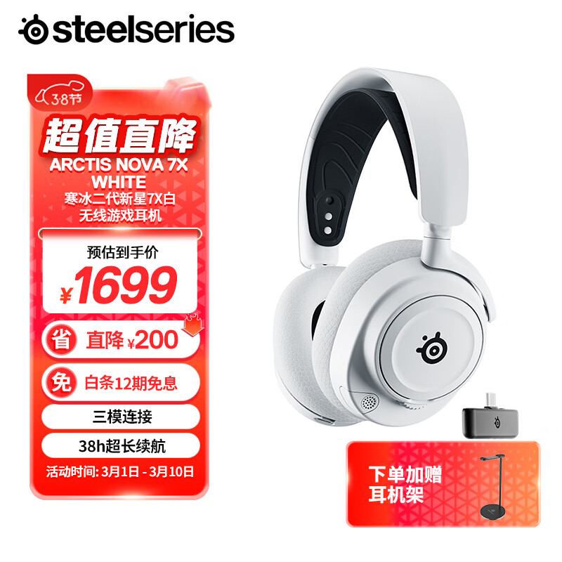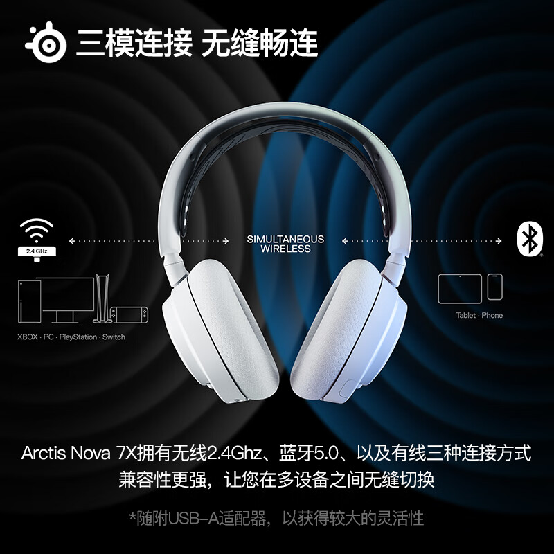 赛睿(SteelSeries)寒冰新星 Arctis Nova7X白色 兼容XBOX 无线电脑电竞头戴式游戏耳机降噪蓝牙三模连接价格:1699.00元!