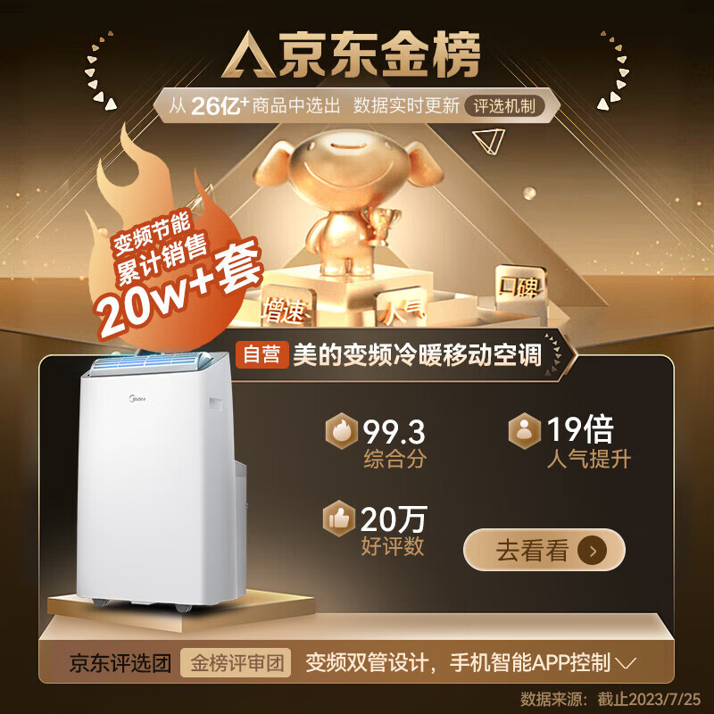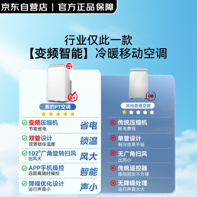 美的(Midea)移动空调冷暖1.5匹变频 京东小家智能生态 家用厨房空调一体机免安装免排水 KYR-35/BP3N8Y-PT价格:2499.00元!