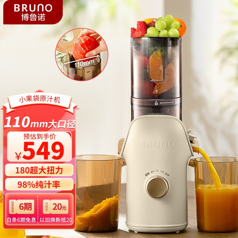 BRUNO原汁机多功能大口径家用全自动低速电动冷压榨果蔬榨汁机破壁豆浆养生果汁机渣汁分离象牙白价格:549.00元!