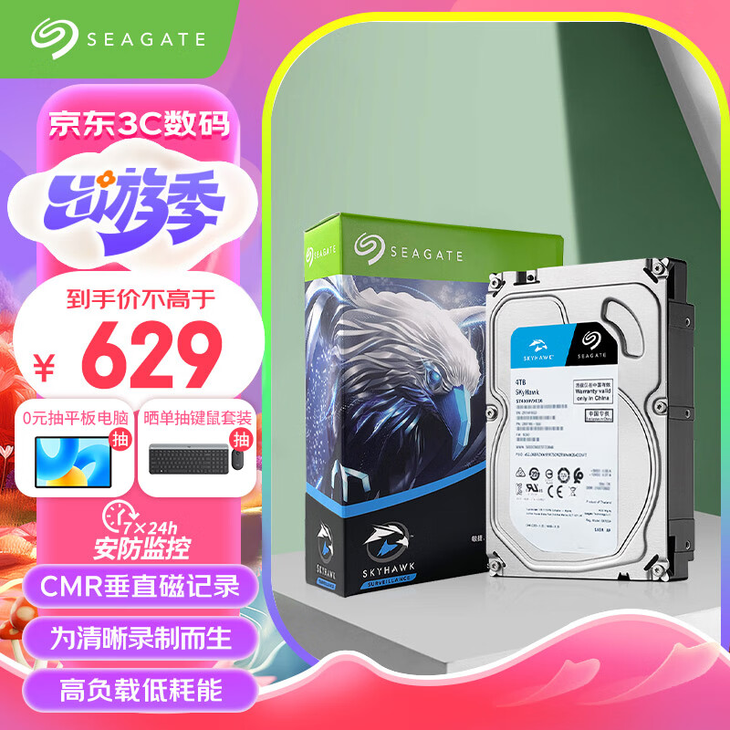 希捷(SEAGATE)监控硬盘 4TB 256MB SATA 垂直 机械 PMR CMR 希捷酷鹰 3.5英寸价格:606.00元!