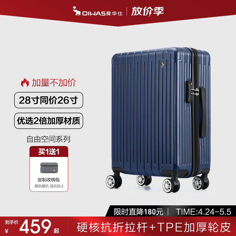 爱华仕行李箱男拉杆箱女大容量旅行箱万向轻便飞机轮28英寸密码箱海军蓝价格:699.00元!