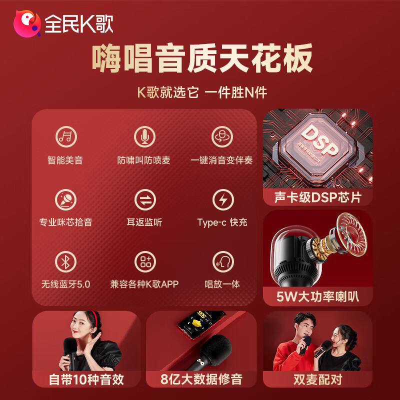 K歌麦克风 家庭ktv变声器儿童唱歌卡拉OK电视抖音直播降噪无线蓝牙k歌宝手持话筒音响价格:267.00元!