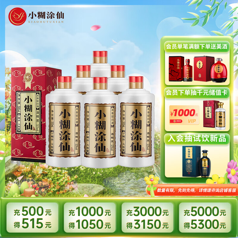 小糊涂仙(普仙)浓香型白酒 52度 500ml*6瓶 整箱装 贵州 送礼佳品价格:1202.00元!