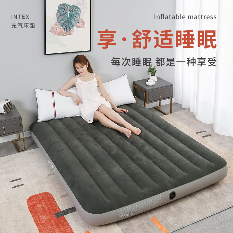 INTEX 64109W充气床垫露营户外防潮垫 家用陪护双人加大折叠床价格:159.00元!