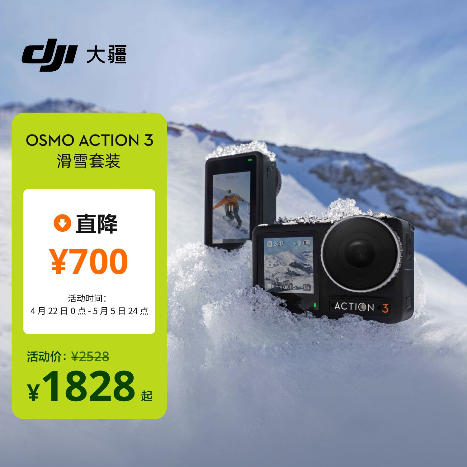 大疆 DJI Osmo Action 3 滑雪套装 运动相机 4K高清增稳户外Vlog滑雪头戴摄像机便携式 +随心换1年版价格:1937.00元!