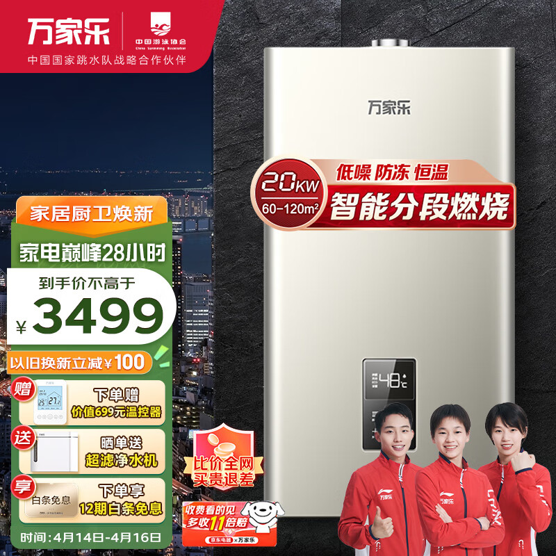 万家乐壁挂炉 洗浴采暖两用 燃气热水器 暖气片地暖 小体积 三重防冻 智能控温20KW天然气D3【60-120平】价格:3499.00元!