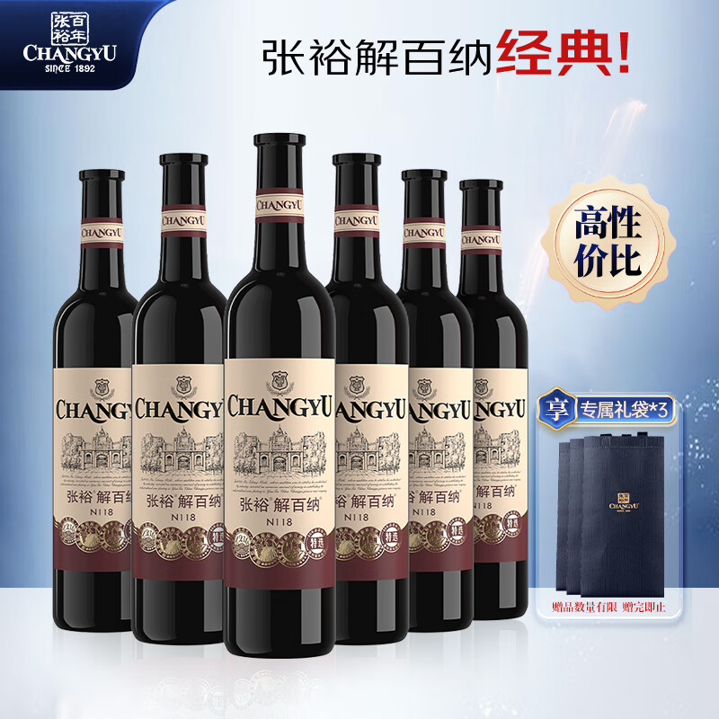 张裕 特选级解百纳干红葡萄酒750ml*6瓶整箱红酒(新老包装随机发货)价格:596.00元!