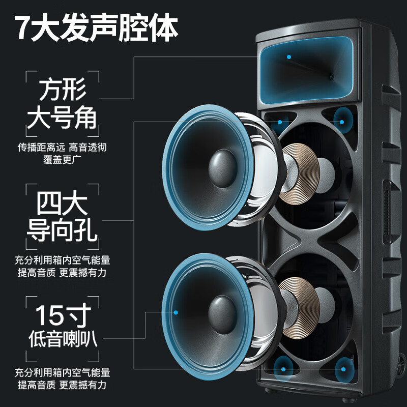 新科H15 双15英寸广场舞音响户外蓝牙音箱拉杆移动便携式室外ktv重低音播放器演出专业k歌 双咪价格:2280.00元!