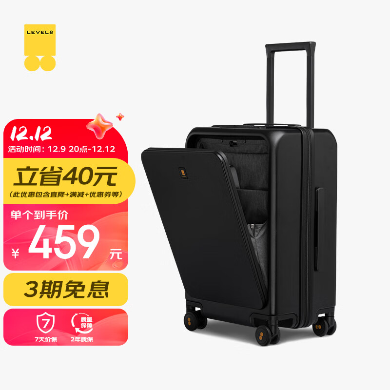 地平线8号(LEVEL8)行李箱旅行拉杆箱20英寸男女商务登机箱前开盖万向轮密码箱黑色价格:499.00元!
