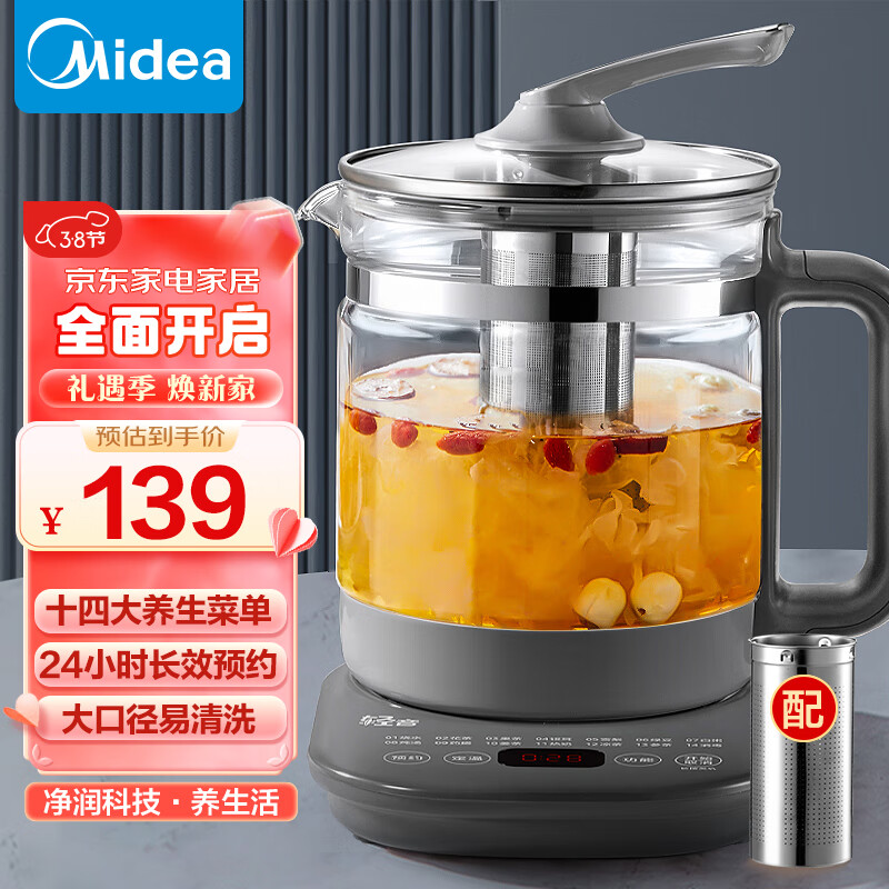 美的(Midea)养生壶1.5L容量大口径烧水壶 24小时预约电热水壶 多段控温煮茶器 MK-YSNC1506C价格:99.00元!